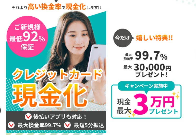 1万円の利用でも換金率92%~!今すぐ即日振り込み対応!