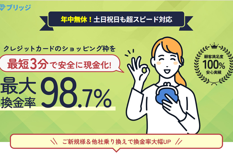 ブリッジでは、男性であれば通常よりも3%換金率がUPいたします。