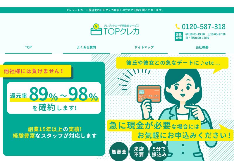 TOPクレカは創業15年以上の実績で経験豊富なスタッフが対応!